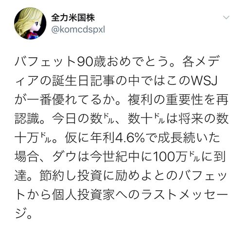 このTweetを見てWSJの該当記事を発見しました。 jp.wsj.com 倹約し、できる限り早く投資をして長期で資産運用し複利の効果を享受しよ。買うのは低コストのS&P500インデックスファンド。という彼のアドバイスが書いてある記事は何個か読みましたが、この記事…